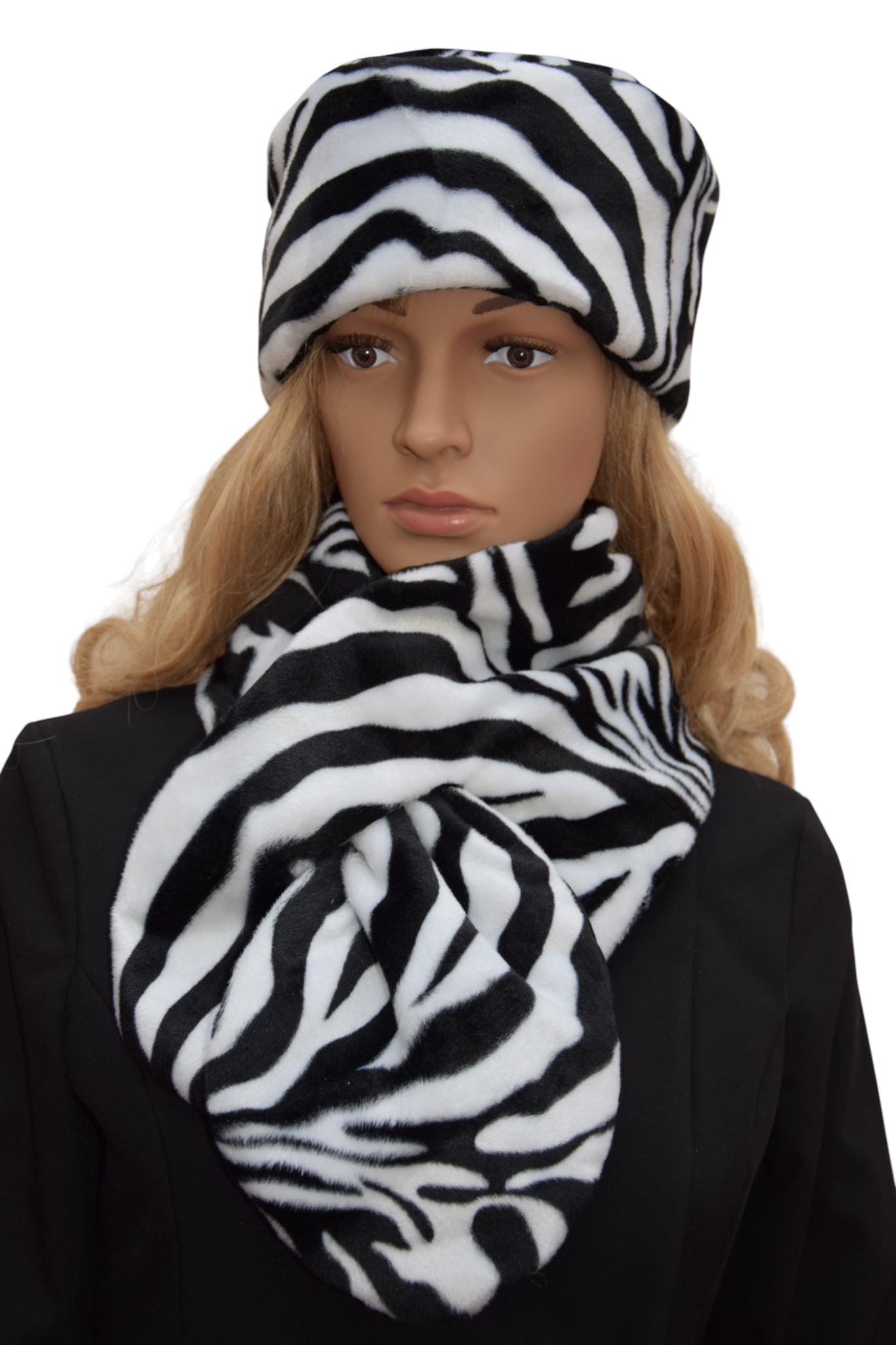 Toque et écharpe noir et blanc